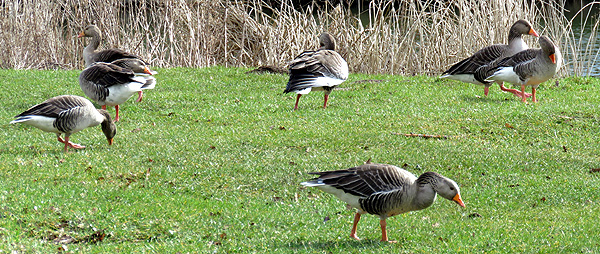 8 Mute Swan plus 1 juv., 4 Greylag Goose,