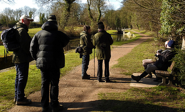 Group above Lindrick @ Fanfield © Pete Kenworthy 25th February Around Kings Wood today were 25 Buzzard, 3 Raven, Sparrowhawk and Kestrel. On the ground were 100+ Fieldfare and c25 Yellowhammer (Andy Murray & Mick Clay). Seven members attended the SK58 walk through Anston Stones Wood, Lindrick Dale, Brancliffe Grange to Shireoaks and back via the Chesterfield Canal. It was a crisp winters day as we made our way through Anston Stones Wood. There were lots of commoner woodland birds calling and in some cases actively displaying, including Blue Tits, Great Tits, Chaffinches, Goldcrest, Treecreeper and Nuthatch. The Rookery in Anston Stones Wood had yet to be recolonised, so the bottom end of the woodland was fairly quiet. Crossing over the busy A57, we ventured down Lindrick Dale. More common woodland birds were added, including Jay and Greenfinch, which appear to be making a bit of a comeback. Wildfowl were a bit thin on the ground with just 12 Mallard and 2 Tufted Duck present on Dale Ponds.